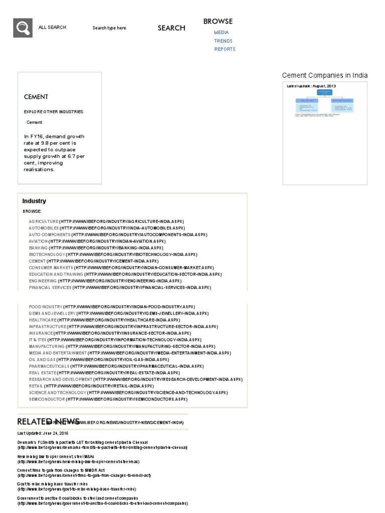 Ever since it was deregulated in 1982, the indian cement industry has attracted huge investments, both from indian as well as foreign investors.